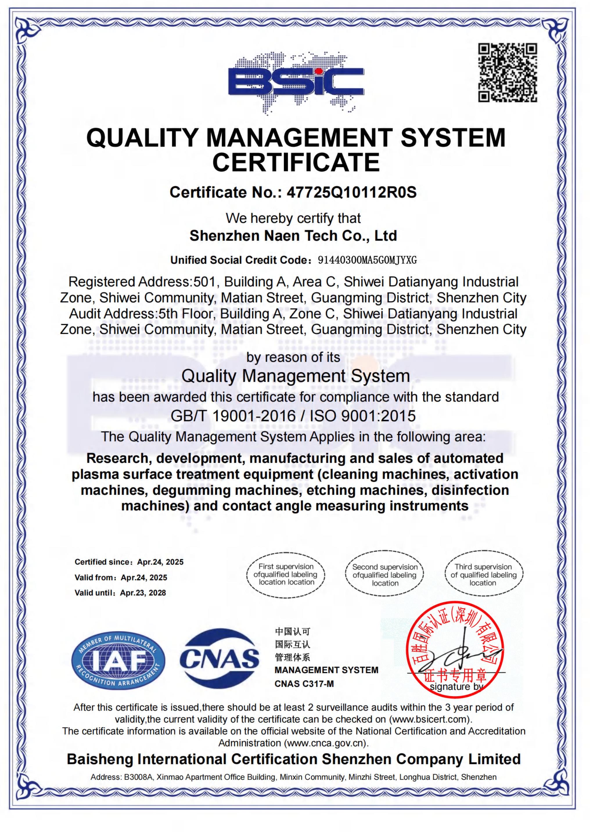 深圳納恩科技有限公司,是一家以中國為基地、面向全球的國家高新技術(shù)企業(yè)、科技型企業(yè),專注于等離子高端設(shè)備研發(fā),生產(chǎn)與銷售,憑借對等離子核心技術(shù)的深度掌握,為全球各行各業(yè)提供極具競爭力的表面處理創(chuàng)新解決方案,穩(wěn)居國際等離子體技術(shù)領(lǐng)域領(lǐng)先陣營。