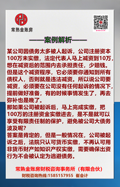 服務(wù)熱線某公司因債務(wù)太多被人起訴,公司注冊(cè)資本100萬未實(shí)繳,法定代表人馬上減資到10萬,想在減資后的范圍內(nèi)去承擔(dān)責(zé)任,少賠錢。但是這個(gè)減資程序,它必須要你通知到所有債權(quán)人,否則就是違法減資。所以說公司要減資,必須要在公司沒有任何起訴的情況下,提前做好準(zhǔn)備,有的時(shí)候事情發(fā)生了,再去彌補(bǔ)也是晚了。