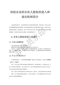 初創(chuàng)公司合伙人股權(quán)進(jìn)入退出機(jī)制設(shè)計